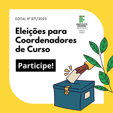 A COMISSÃO ELEITORAL, DESIGNADA PELA PORTARIA Nº 4671/IFMG, DE 19 DE AGOSTO DE 2025, torna público o presente EDITAL 871/2025, que estabelece as normas para as eleições dos coordenadores dos cursos técnicos integrados em Administração, Eletrônica e Informática, e dos cursos superiores de Bacharelado em Administração, em Sistemas de Informação e em Engenharia de Controle e Automação, e Tecnologia em Tecnologia em Logística, referentes ao período de 2025-2027.