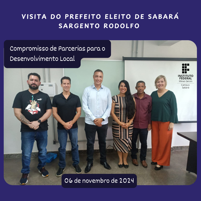 Prefeito Eleito de Sabará, Sargento Rodolfo, visita o IFMG Campus Sabará e reforça compromisso com parcerias para o desenvolvimento local