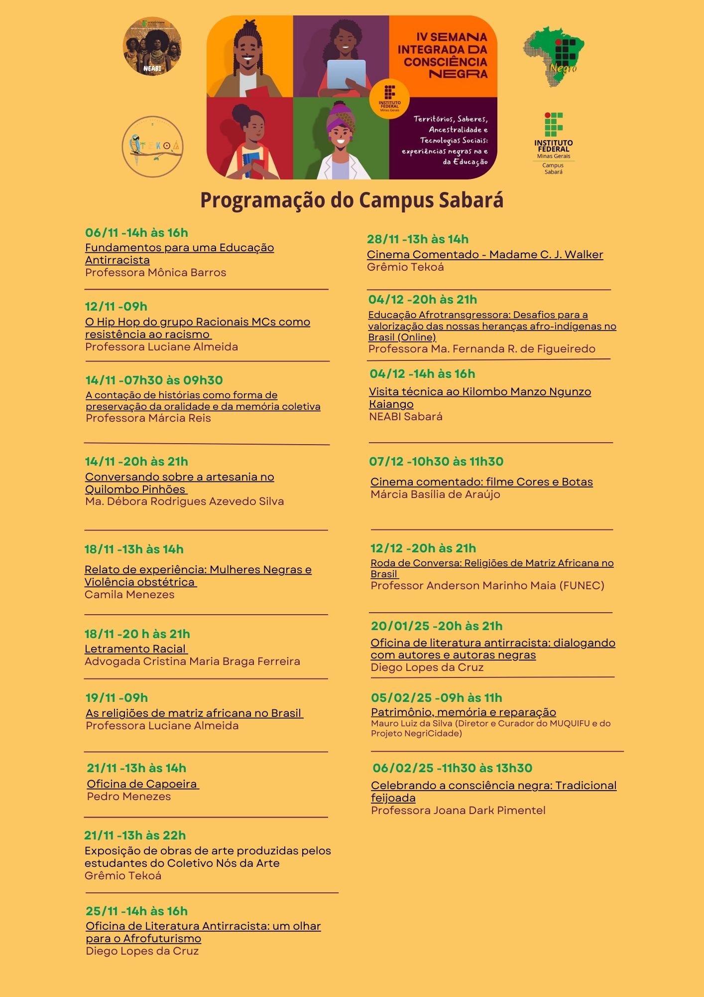 Programação local da IV Semana Integrada da Consciência Negra do IFMG