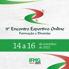Fique atento e reserve a data! Nos dias 14, 15 e 16 de setembro acontece a 11ª edição do Encontro Esportivo do IFMG, que desta vez será realizado de forma on-line (via plataforma Even3), devido à pandemia de Covid-19.